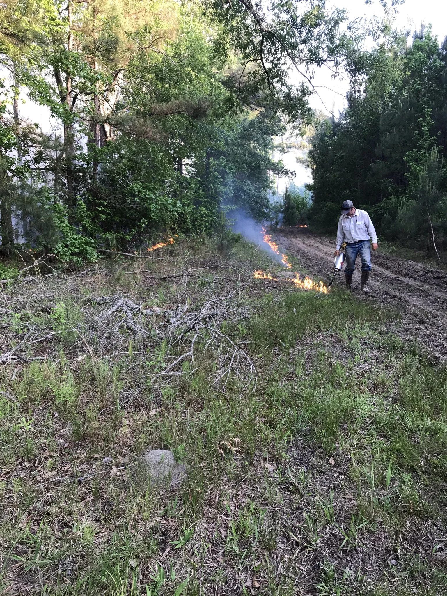 Every year, we conduct a prescribed burn on a different part of the farm for weed control, pest management, and to promote nutrient cycling and forage quality. Our loblolly pines stand up well to the fire and our native grasses thrive in the months following. We always allow our landscape to recover and regrow before planting or grazing.